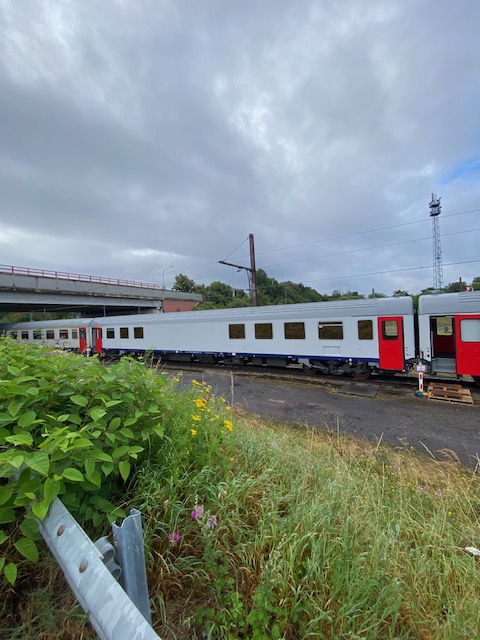On the Assumption of Mary weekend, this year on 15, (16), 17 and 18 August, PFT-TSP organised rides in line 100. A 77 series diesel locomotive, a not-in-use 21 series electric locomotive, three 1st class M4 carriages and diesel locomotive 5519 ferried enthusiasts over line 100. For loco-hauled trains, four ‘dead weight’ vehicles are a mandatory minimum.