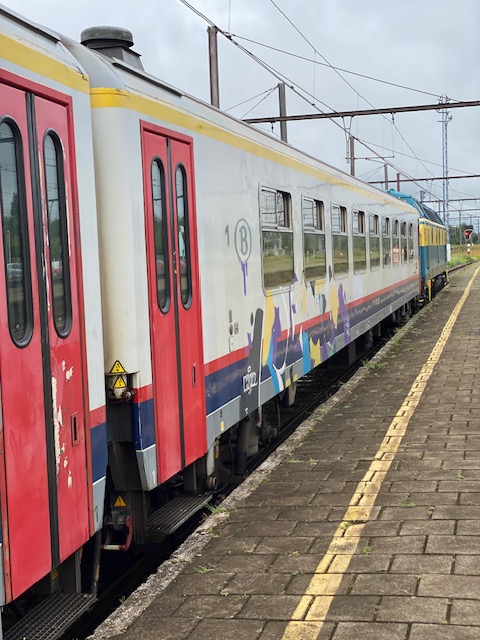 We depart Antwerp-Central at 6.09 AM to be in Saint-Ghislain just before 9 AM. We travelled via Brussels and Tournai (Doornik). First we walked to the Rétrotrain site, thinking the train ride would depart there. But no.