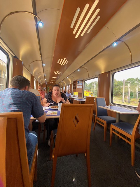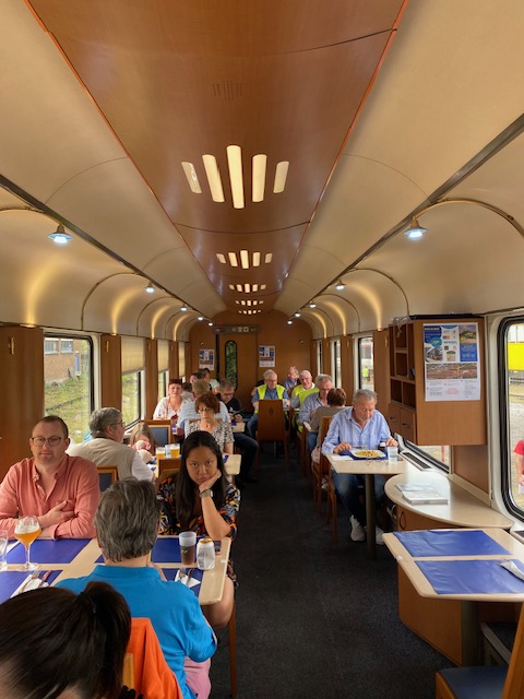 We had booked and prepaid a table in the NMBS / SNCB restaurant car. Indeed, the railway company had brought its only restaurant car and its only bar-disco car to the festival.