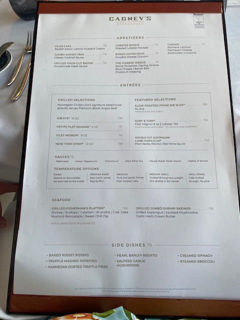 Steve and I like specialty dining but main diining room food is more than decent. If I wouldn’t add specialty restaurants, I’d want to mix it up with visits to the buffet for variation.