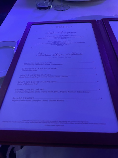 We had a Specialty Dining Package so we didn’t pay à la carte prices. In the package is included: two starters, one main, one dessert. The same is true for the other specialty restaurants.