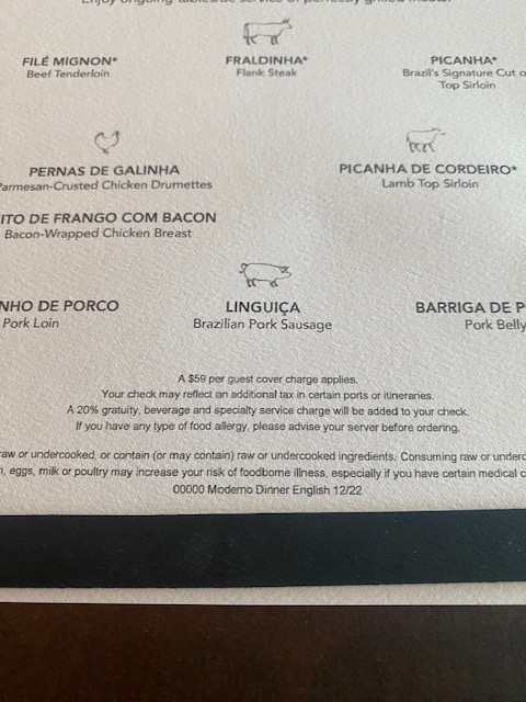 A red and a green card indicate if you want to stop or continue eating. Moderno was probably my favourite restaurant on board.
