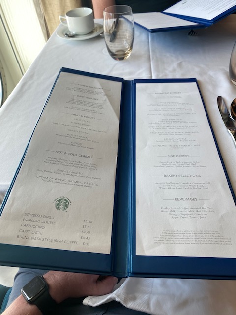 As it has the same menu as Taste and Savor, we did not dine there. There’s live music and that’s not our cup of tea. We did assemble for a shore excursion there.