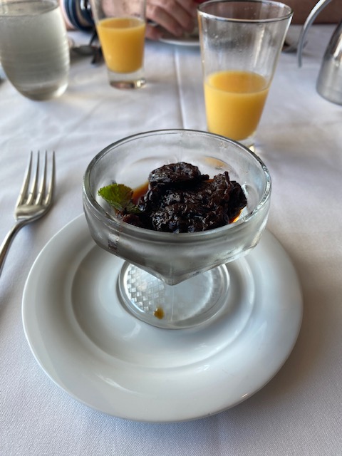 But Le Bistro is a stereotype of French cuisine. Escargots (snalils)? Yes, it’s very French but it’s the cliché of French cuisine. The menu, the setting. Le Bistro seemed to be designed by the makers of ‘Ratatouille‘ (the film) together with the set designers of ‘Emily in Paris‘. The waiters should have worn stripy T-shirts and berets to complete the look.