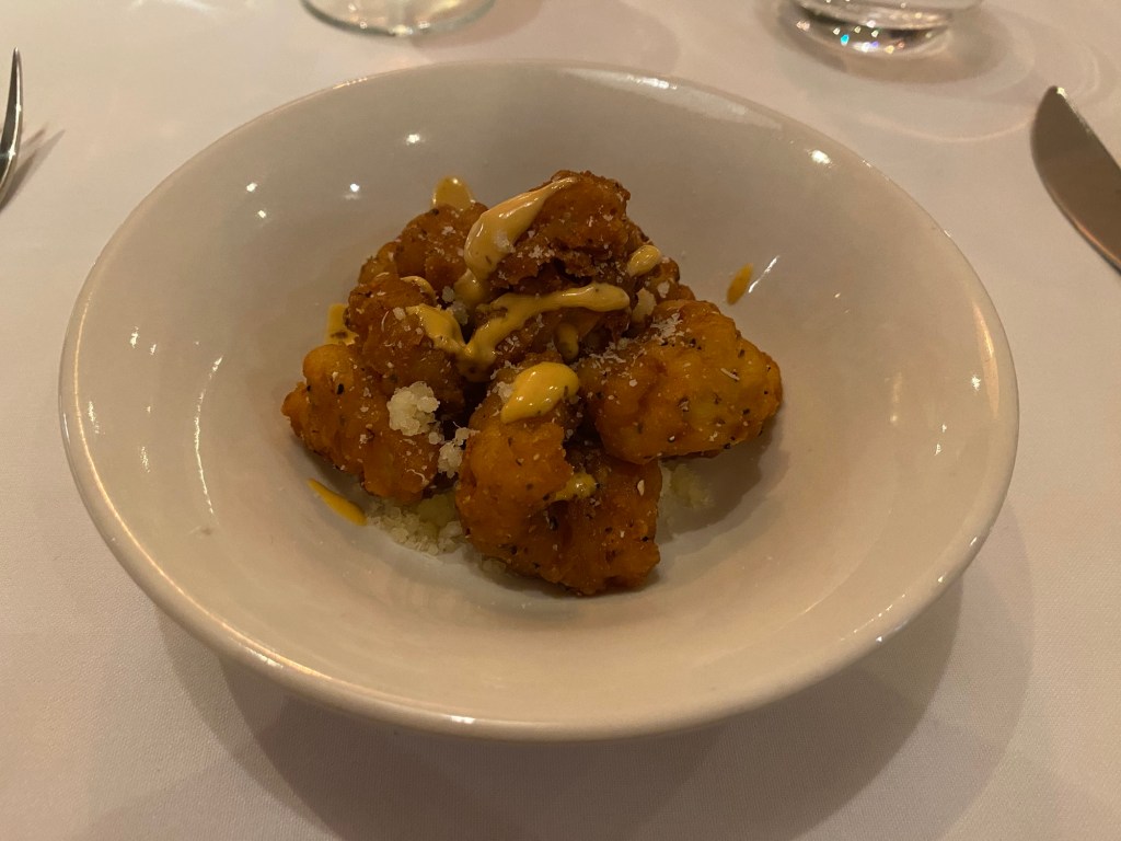 As we had a booked a Dinner Bed and Breakfast rate we had dinner at the hotel. We had the choice of either a set 3-course dining menu or a £23 dining credit. We opted for the 3-course set menu, as it offered the best value for money. It offered three options for starter, main and dessert. However of the three main options on the menu two where out and replaced by items on the à la carte menu. When we order the replacement item from the a la carte menu it also ran out. In the end we had to contend ourselves with the only option left, the Thai curry.