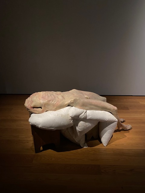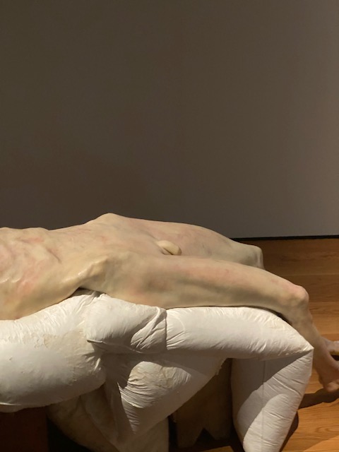 When someone needs or wants help, how do we help? At one point the exhibition gives the visitor a choice. A person is in stuck in a crater-like whole. Do you