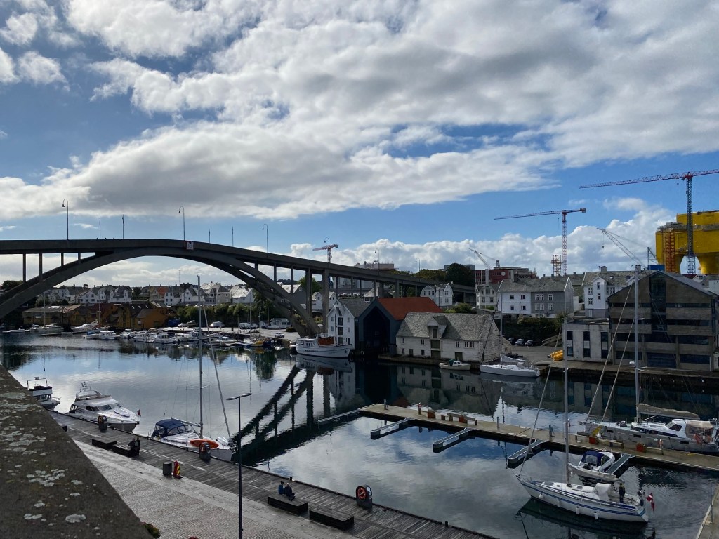 Our First stop was the city of Haugesund. The docks looked a bit industrial as the ship docked right next to a factory of oil rigs. Due to the inclement weather we opted out of walking to the city centre and instead chose to travel on the rather expensive shuttle bus across the iconic Risoy bru bridge to the city centre.