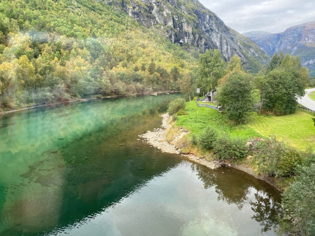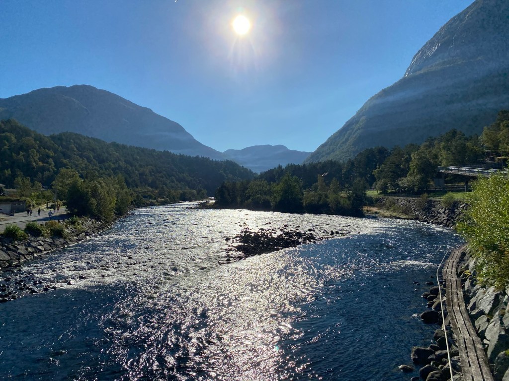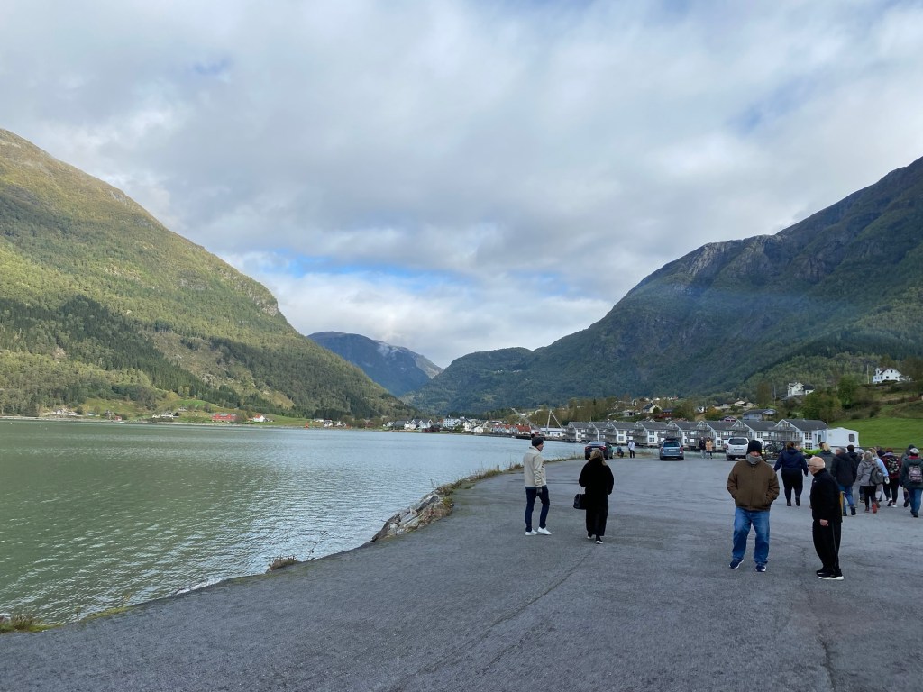 The second stop was in Skjolden. This felt much more like what we would expect the Norwegian fjords to look like. The ship docked a bit outside the city centre, but we could follow a nice walking path along the fjord towards the centre.