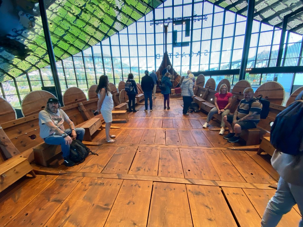 Our next stop in Nordfjordeid was once again a rather rural town with quaint wooden houses. Here they also had a Viking museum housed in a modern building. We visited the museum and found a replica of a drakkar inside, some typical museum exhibits and a virtual reality experience in which you could walk through a Viking village.