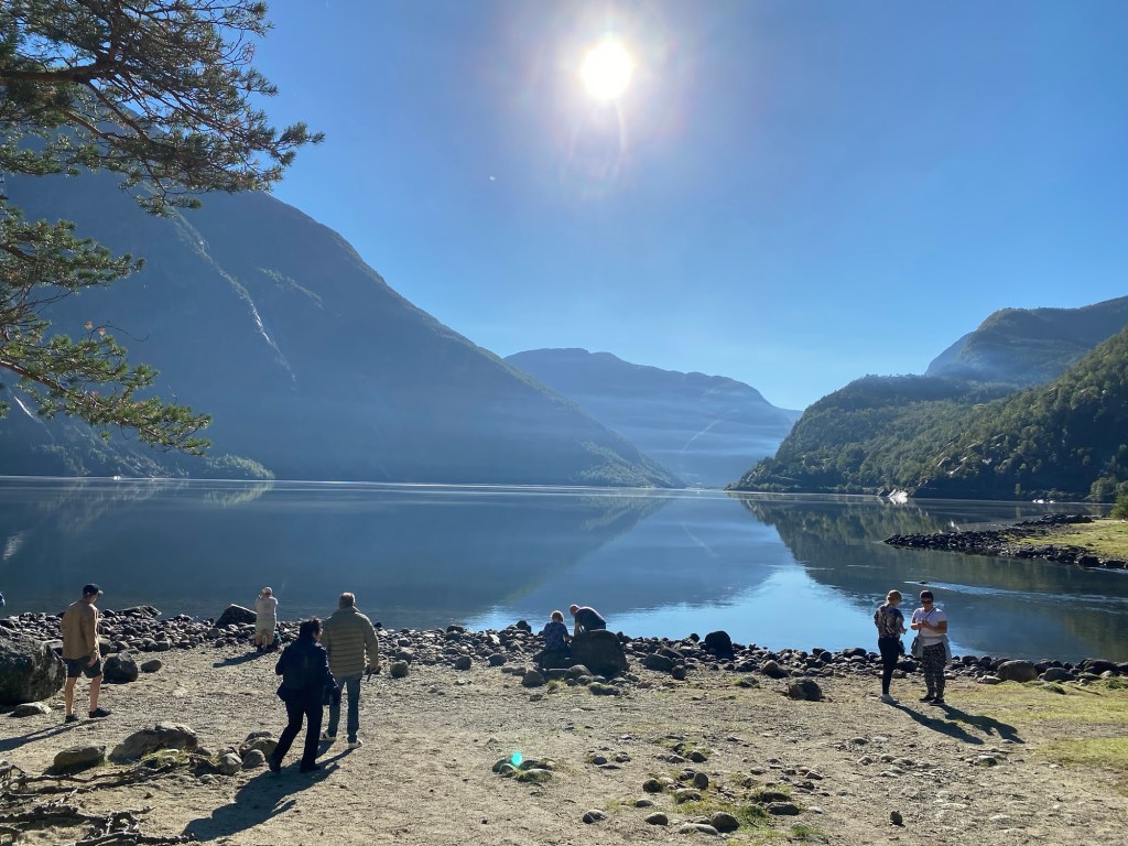 In Eidfjord we stopped in an even quieter village, but here we walked to a lake a bit further and on the way back passed an ancient Viking burial ground.