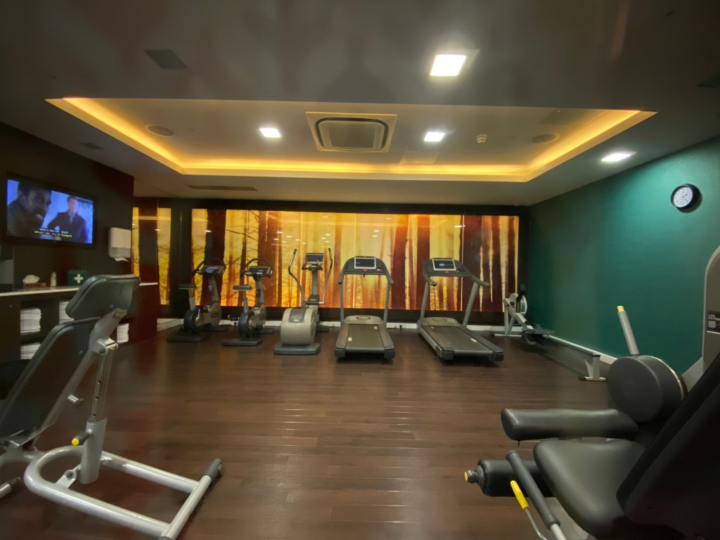 Down in the basement they offered the gym and pool. The gym was what you would expect from a hotel in its category. The pool was well-sized and the right temperature, only the built-in Jacuzzi might be a little cool for certain people. Right next to the pool there also was a Sauna, which Sam loved to use.