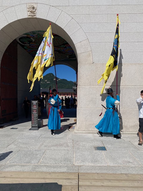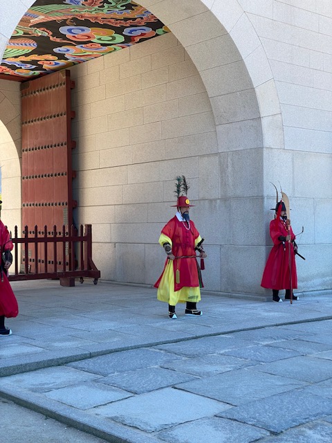 Today, the changing ceremony of the royal guard (수문장 교대의식) in front of Gwanghwamun is recreated just like the Joseon Dynasty. It takes place twice a day.