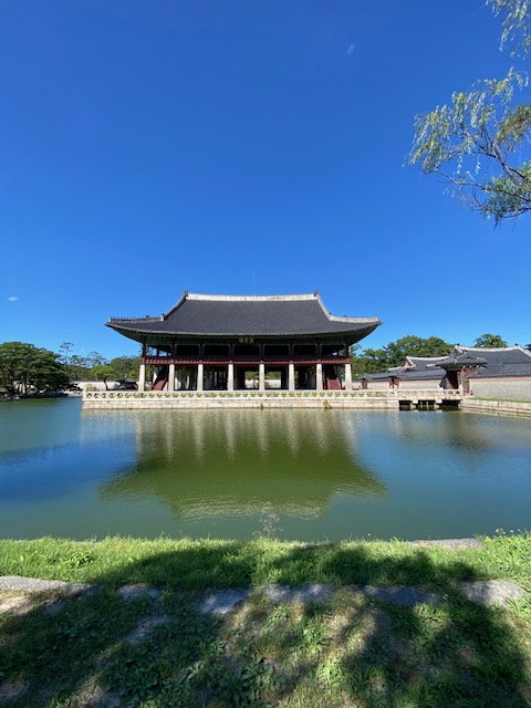 Gyeonghoeru is a hall used for state banquets. It was first built in 1412 but was destroyed by fire during the Japanese invasion. The current building was reconstructed in 1867 on an artificial island. It is a National Treasure.