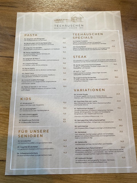 We had lunch at the one decent place we saw in the vicinity of the Bauhaus Museum Dessau. The Teehäuschen is mostly an – expensive – Italian restaurant and ice cream parlour. “Mediterranean food, delicious ice cream & cool drinks. In a nutshell: a place that invites you to linger.” A funny feature is a section for the elder. Half portions of German classics.