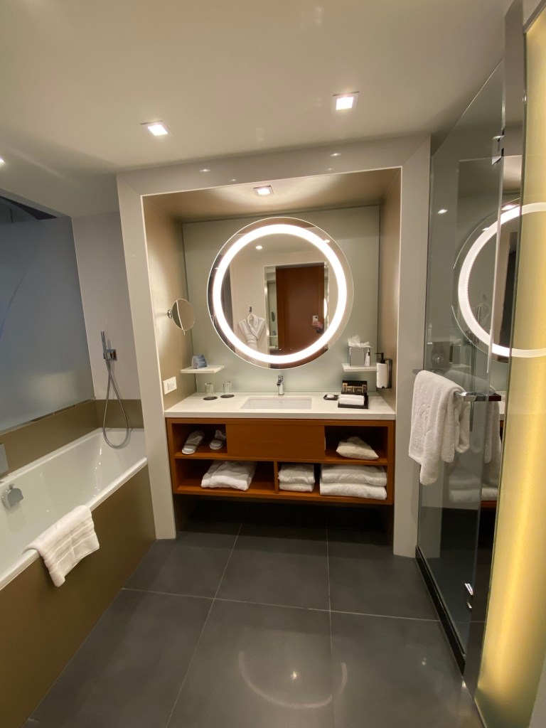 The room was nice and spacious with a big table that could be used as a desk or a dining table. The beds where heavenly and I loved the two thick firm pillows provided. Unlike the usual struggle at hotels with two pillows where one isn’t enough and two too much, with these Sofitel pillows just one was the perfect height and size for a perfect night’s sleep.