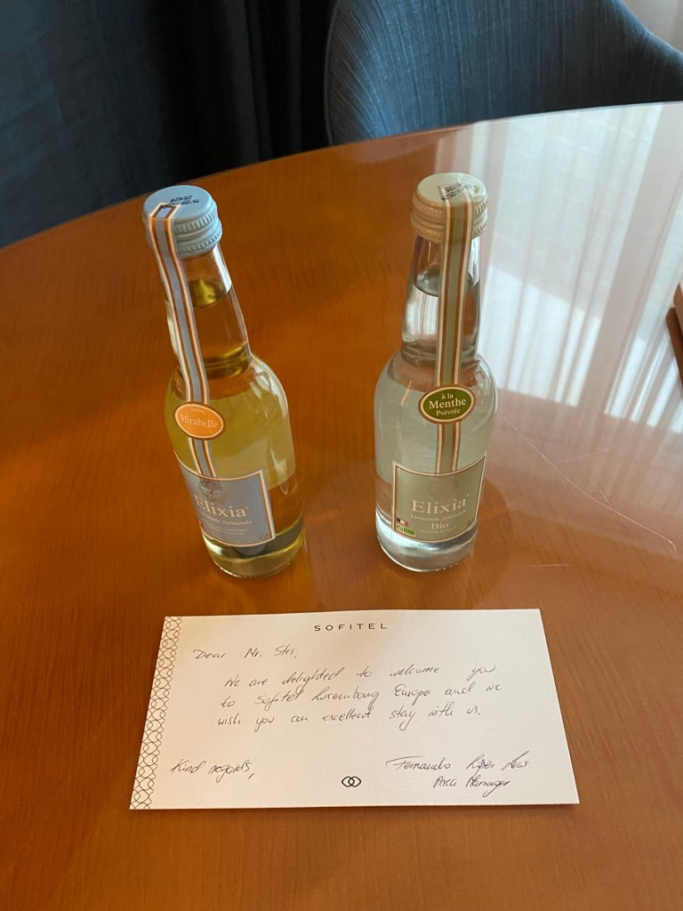 As a welcome gift two bottles of locally produced lemonades where set on the desk.