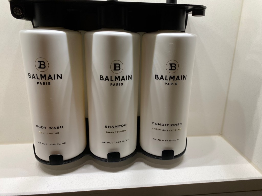 They had nice multiple use amenities with both sets of body wash-shampoo-conditioner at both the bath and in the shower. It was unfortunate that the body lotion dispenser was almost empty however. Plenty of towels (engraved with the Sofitel logo) where provided along with very nice bathrobes and slippers.