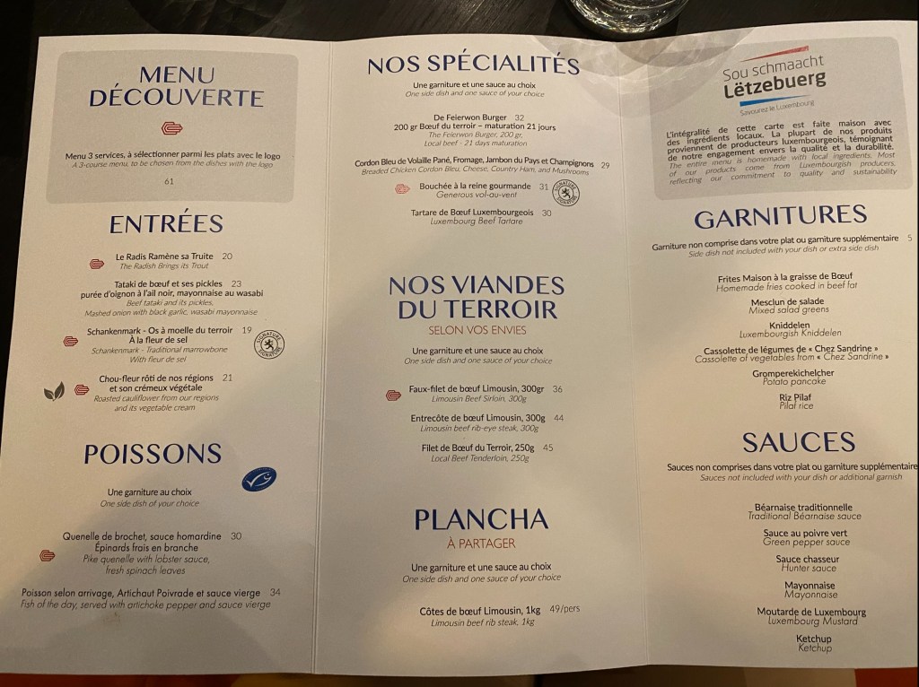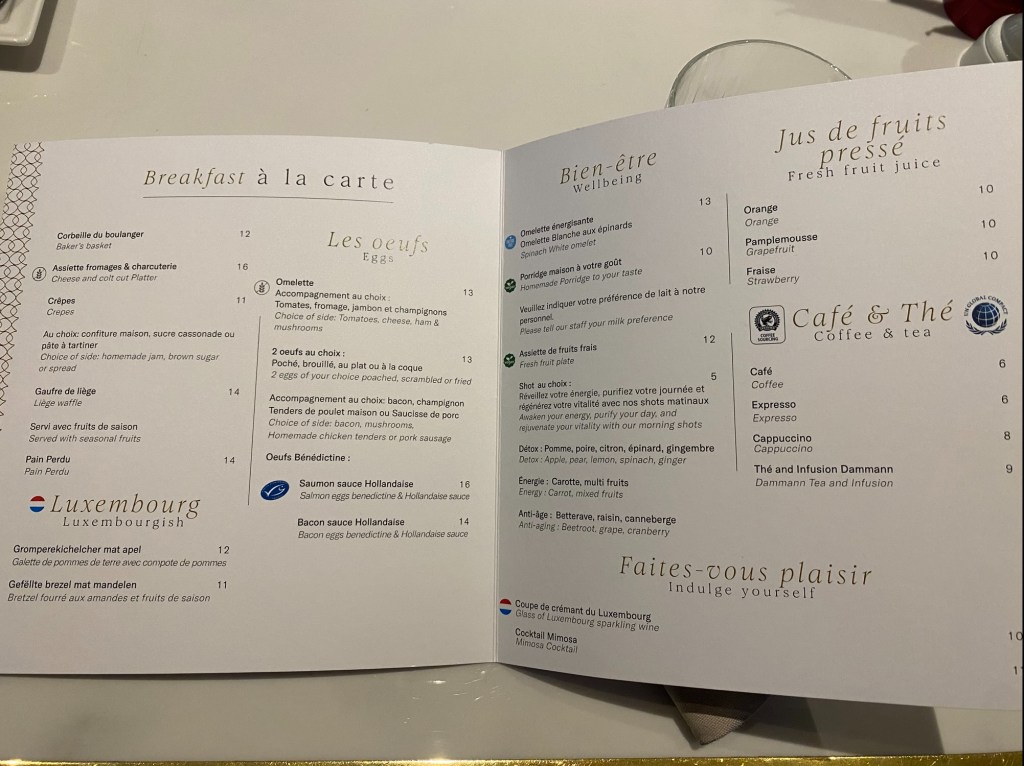 Due to the inclement weather we decided to dine in the hotel, upon check-in they offered to make reservations for us in one of the hotels restaurants with a choice between their Italian restaurant of their Luxembourg restaurant. Of course we opted for Feierwon, the Luxembourg one.