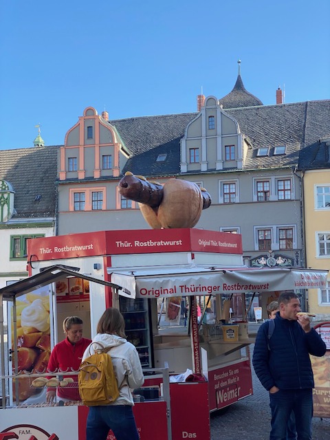 We had forgettable burgers for lunch at Franz & Willi and Weimar sausage for dinner at Gasthaus zum weißen Schwan.