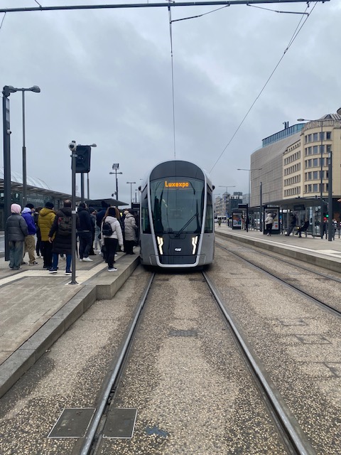 A tram line, operational since July 2024, now runs from northern Kirchberg along Avenue J.F.K, through the city centre, and to the Cloche d’Or business district. A major transport hub was completed in May 2022 near Luxexpo, with future plans to extend tram services to Luxembourg Airport by early 2025 and to further urban developments in Kirchberg by 2035.
