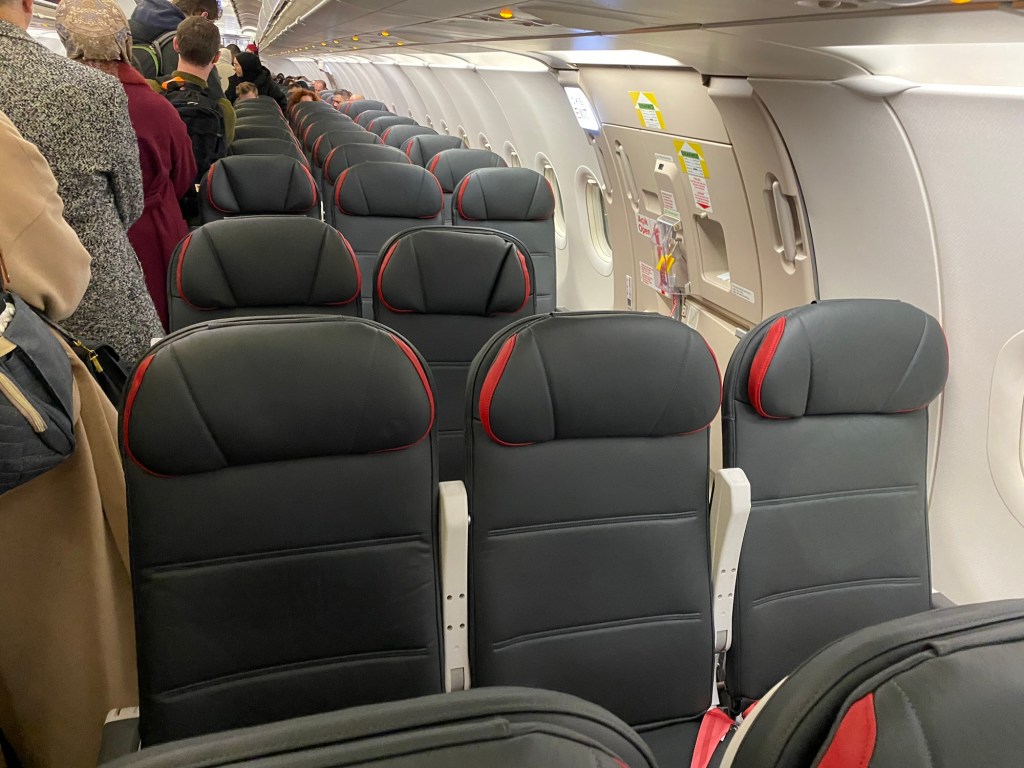 Basic earphones to use with the IFE where put on the seats for everyone. The IFE was already functional on the ground, so you could start watching something as soon as you were settled in. Upon hearing the “boarding completed” sentence we could see that the entire plane was completely filled, except for the row of two seats behind us next to the emergency exit. We kindly enquired that if it would be possible to change to those seats after take-off if they were unoccupied.