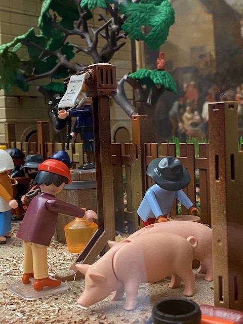 When we visited, the museum had a collaboration with Playmobil. The subjects of some paintings were recreated in Playmobil. Some were combined or enhanced.
