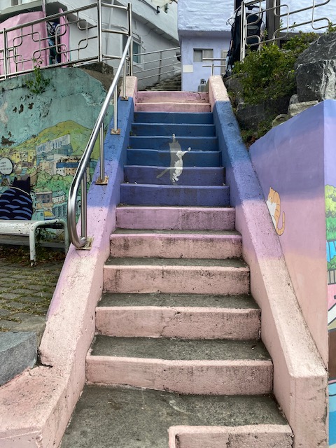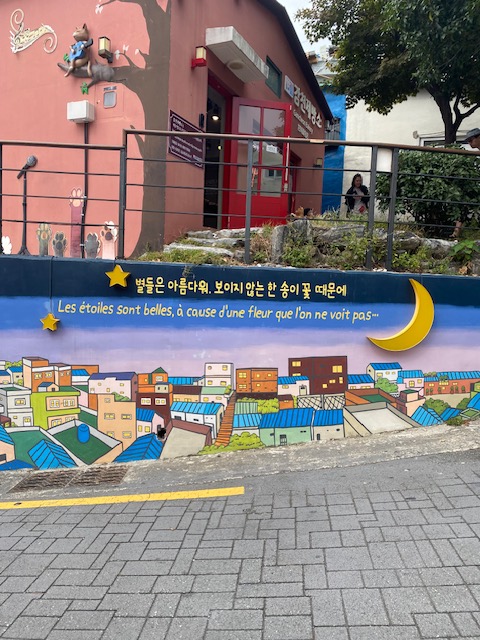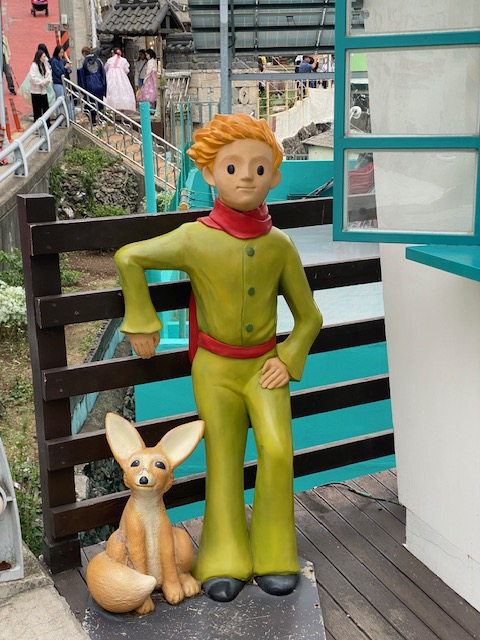 Gamcheon had a bit of theme park vibe for me. Things are made for tourists. The Little Prince is being (mis)used to make the area 애교 (aegyo). ‘Aegyo’ is the ‘kawaii‘ (可愛い) or ‘cute’ of Korea. And not only the Petit Prince is omnipresent, so is the world of Pokémon and that of Studio Ghibli.
