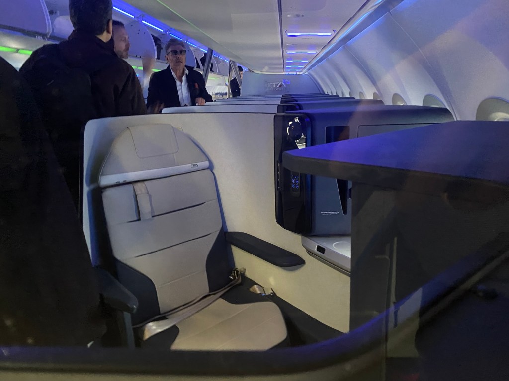 Boarding was organised cleanly by different groups and Business Class and priority customers where invited to board first. Almost everyone in front of us had ‘bad beep’ and received a boarding pass with a different seat, very odd