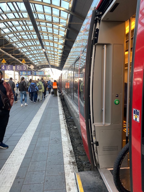 Be quick to get on and off the train. Be ready at the door, because the train doesn’t wait. Germany is not Belgium, and passengers know it. No waiting until the train has stopped to gather their belongings and go to the door.