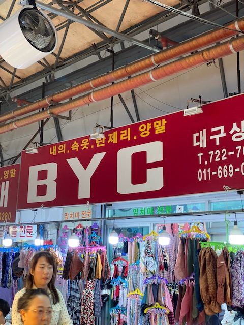 Just outside the market we found a BYC store. Finally, I found some Korean underwear. If you read the previous posts on this Korea trip, you’ll know it was a quest of mine. But there it was: a BYC store. The shop was chaotic and the vendor had to show everything.