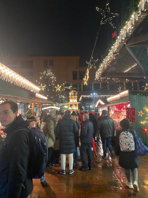 A Christmas market is different in the dark. It’s what you expect from a Cgristmas market. The lights influence the ambiance.