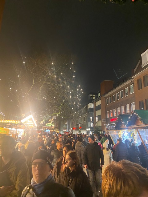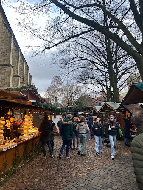 We were in Münster on Saturday 21 December 2024. The Christmas markets opened at 11 AM and closed at 9 PM. That seems early and it is. But ten hours of operation is long. Being the Saturday before actual Christmas, it was obviously crowded.