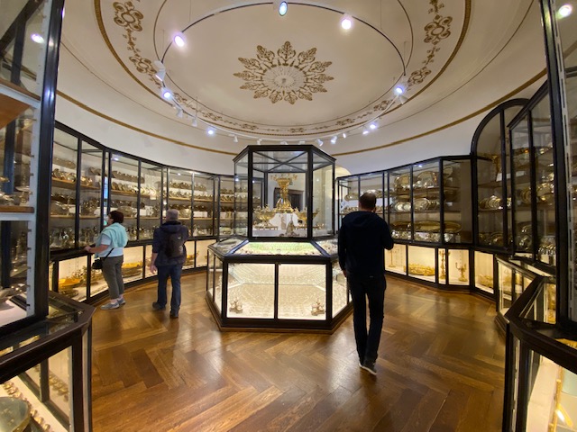 The Furniture Museum (Möbelmuseum Wien), also part of our ticket, proved to be an unexpected delight. Tucked away, it contained thousands of items from the Habsburg collections, including Biedermeier and Historicist pieces, baroque wheeled chairs, velvet-covered kneelers and even an imperial travel throne.