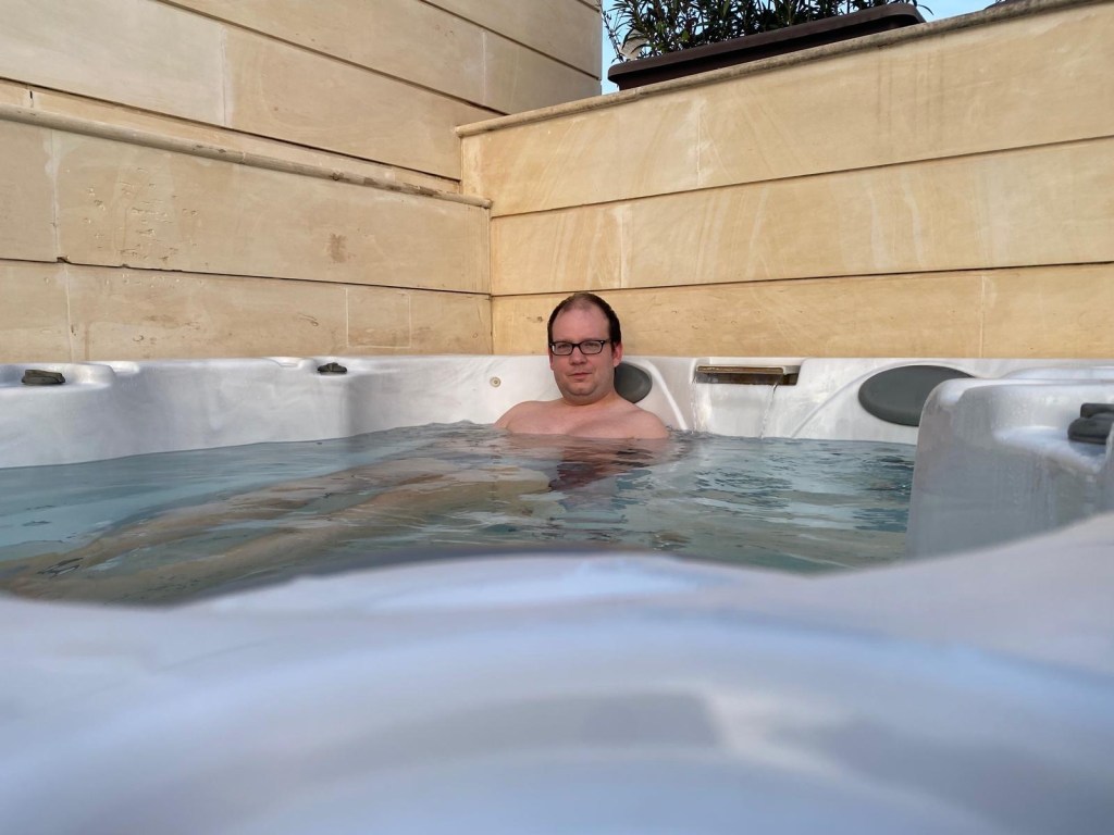 On the rooftop the hotel has a nice panoramic terrace, there they also have a jacuzzi for hotel guests to use. The jacuzzi incurs a fee of €50 for an hour per use and obligatory reservation but includes the use of slippers and bathrobes as well as a glass of prosecco and a fruit plate.