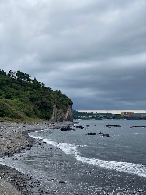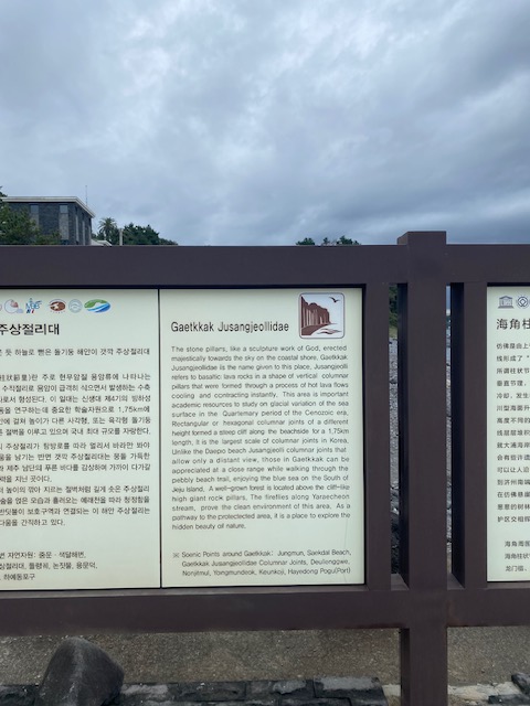 Sometimes it’s hard to know the exact name in Roman alphabet of places in Korea. Gaetkkak Jusangjeollidae Cliffs or or Daepo Jusangjeolli Cliff (주상절리대(대포동지삿개)) is such a place.
