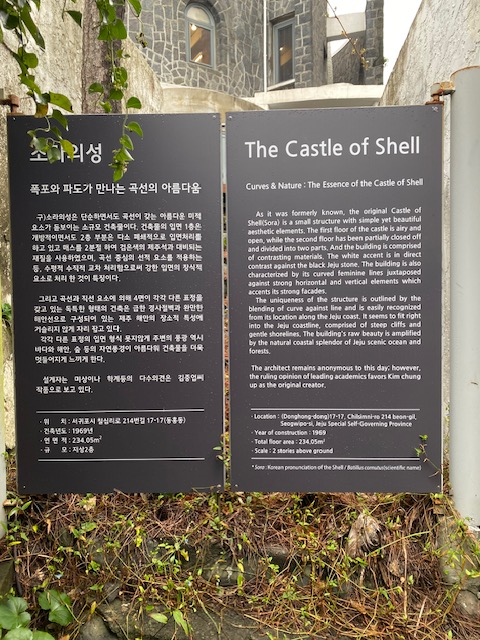 To get there, you pass the Castle of Shell(s) (소라의성). The ‘Castle of Shell or Bommie Castle of Shell(s), is an attraction created by artist Bommie Kim. It’s an art installation built entirely from shells collected over several decades from Jeju’s shores. This intricately decorated structure features various marine-themed motifs and sculptures, crafted to resemble a fairytale-like castle.