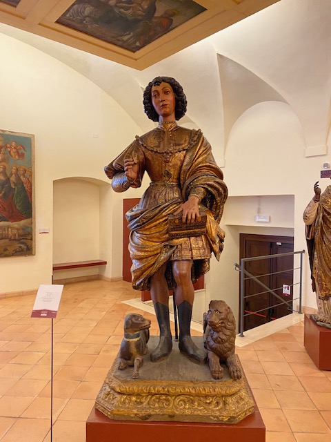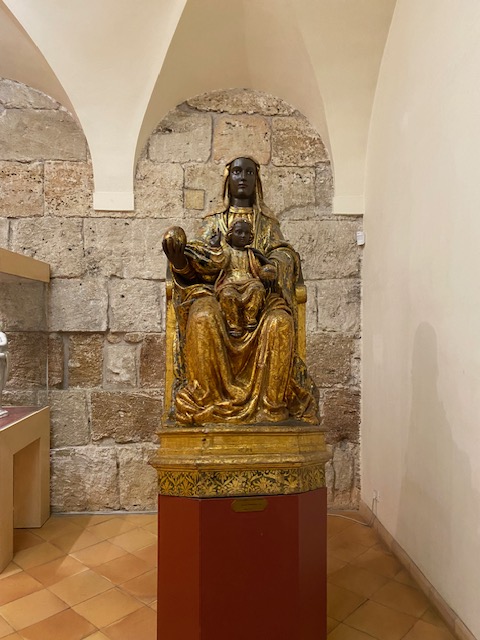 Other noteworthy features include the 1466 Gothic-Catalan style wooden choir, remnants of Gagini’s dismantled retable, a marble ‘Madonna and Child‘ by Francesco Laurana and his pupils (1469), a 13th-century polychrome ‘Crucifix‘ by Manfredi Chiaramonte, and a holy water stoup sculpted by Domenico Gagini.