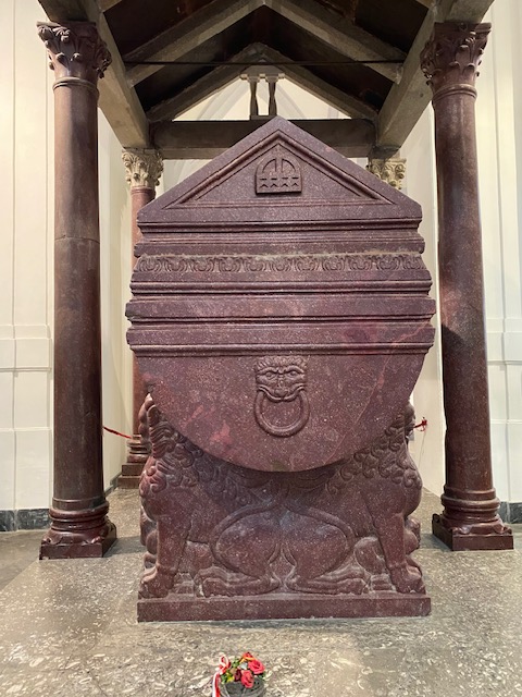 These tombs are among the earliest examples of free-standing medieval secular burials in Western Europe, crafted from a single Roman column shaft, possibly sourced from the Baths of Caracalla or Baths of Diocletian in Rome. Their design was influenced by the porphyry sarcophagi of late Roman emperors in Constantinople.