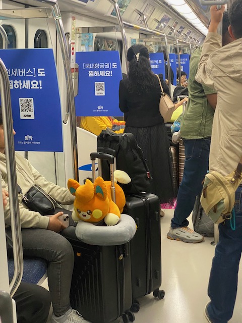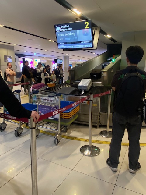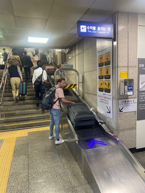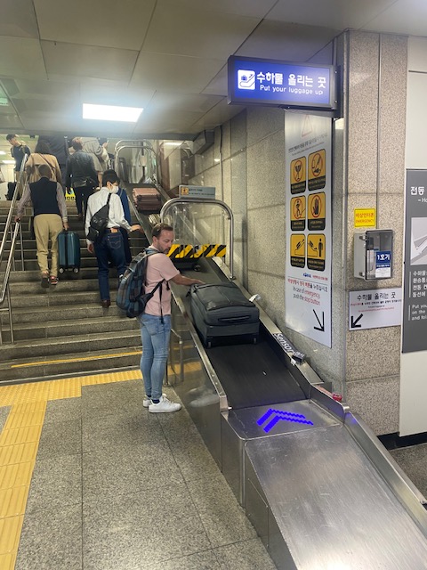 There’s an Arex connection to Seoul Station which you don’t need to book and is more of a metro than a ‘real train’. A fun feature at at the subway station was this belt for bags, but Oriol’s bag was too heavy.