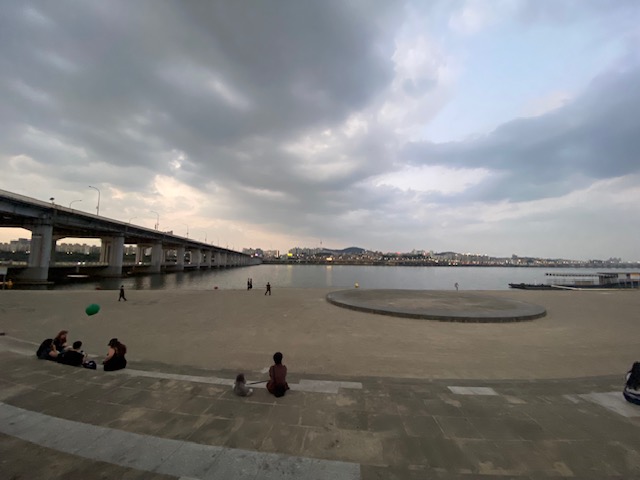 Day was slowly turning into evening. We said goodbye to Sehyeon, who had planned an evening with a friend in Seoul. So Oriol and I went to Banpo Hangang Park (반포한강공원).