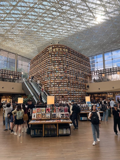 The Starfield Library, located at the heart of COEX Mall, is a strikingly designed public library space that has become an iconic feature of the complex. Covering an open area of around 2,800 m², the library is known for its dramatic, floor-to-ceiling bookshelves that extend over three stories.