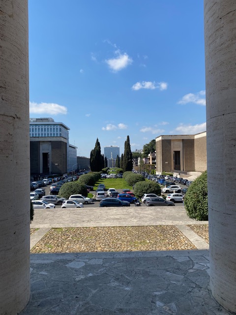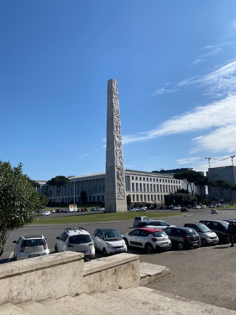 EUR is not really touristy, it’s ‘real life’. The car is king. Cars and (full) parking spaces everywhere and in the way of pretty pictures. While EUR is walkable, it’s not the most pedestrian friendly place.