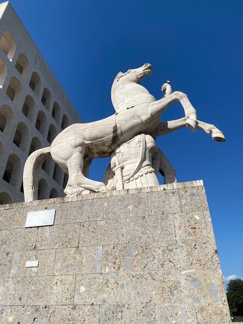 EUR, sounds very European, no? After all, the 1957 Treaty of Rome founded the European Economic Community, which now is the European Union. But no. EUR stands for Esposizione Universale Roma or Rome Universal Exhibition.