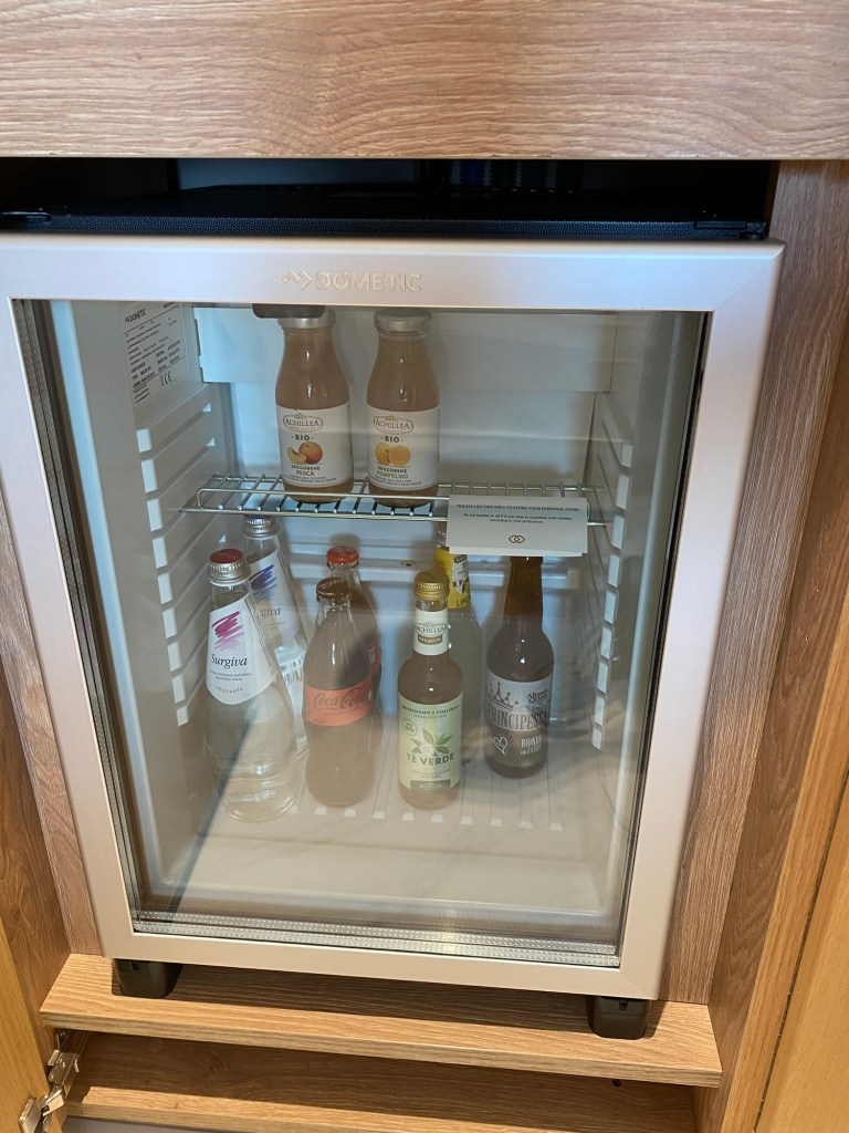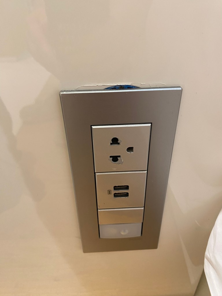 The room itself was beautiful and welcoming. There were two separate beds pushed together in the middle, with both 230 v Ac power and USB-A plugs. On Timothy’s side this plug was damaged and would move, making charging difficult.