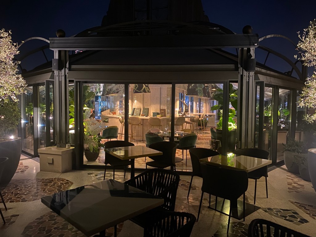 While the location at first looks and feels a bit random, you get why when you arrive on the 7th floor restaurant and its panoramic view over the city. There are hardly better places to spot the iconic skyline of Rome.