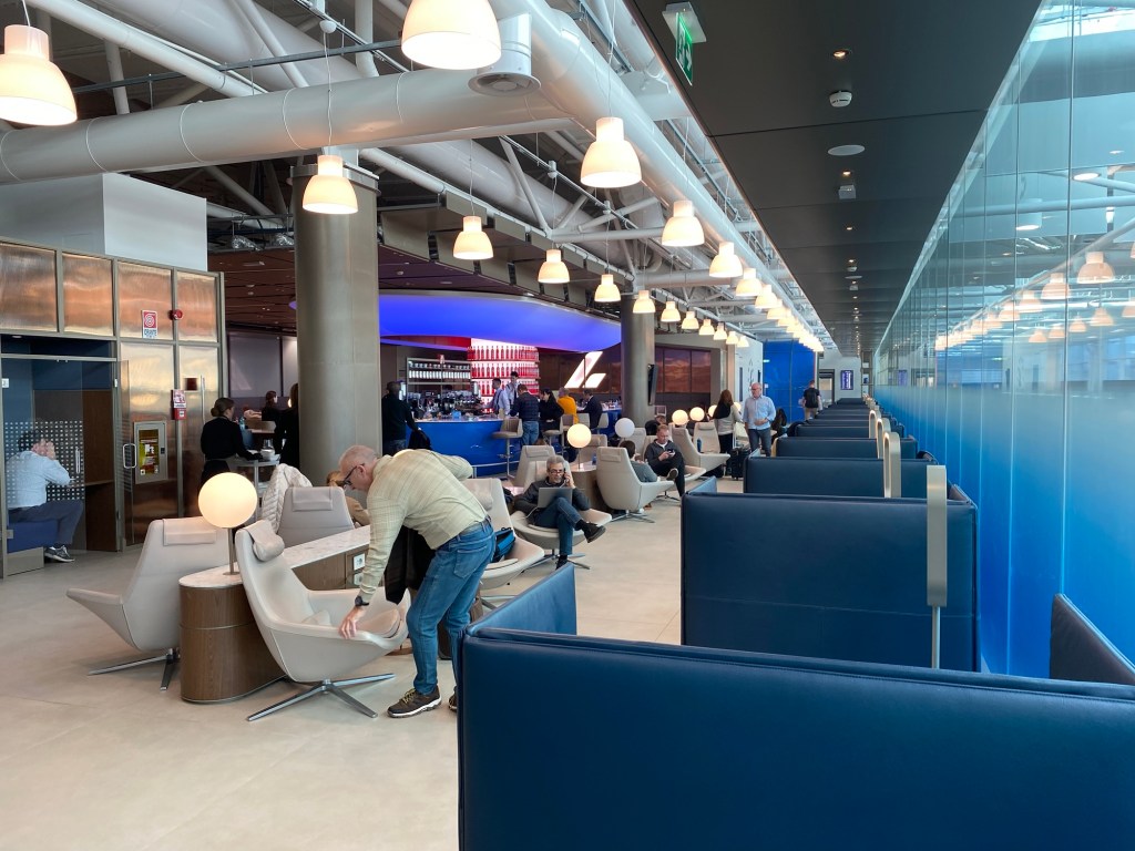It is actually a rather small lounge considering the size of the airport and it being ITA Airways’ main hub. It’s a big room with some different styles of seating spread around and a stylish bar in the middle.