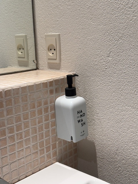 The bathroom has a ‘standard’ size. One sink, a walk-in shower. The floor is a bit odd. It’s made of pebbles. I’d call it Mediterranean. There is no foot mat. Because the pebbles are ‘drying friendly’?