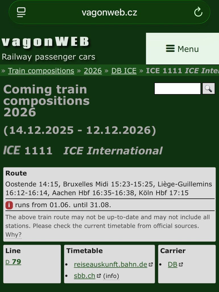 Is Deutsche Bahn planning a direct ICE high-speed train link from Cologne in North Rhine-Westphalia to Ostend in West Flanders? VagonWeb, the leading website from Czechia that collects train compositions throughout Europe, thinks so.