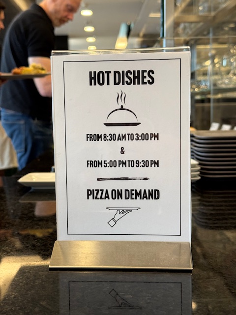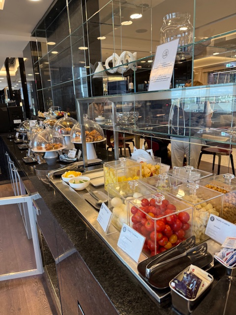 The food and drinks? Meh. The usual options. It was breakfast tile so Italian breakfast items. What are those? Cake! But also tea and coffee, water, alcohol, vegetables, English breakfast items… Oh no! None of those. No hot options for breakfast. Boo!