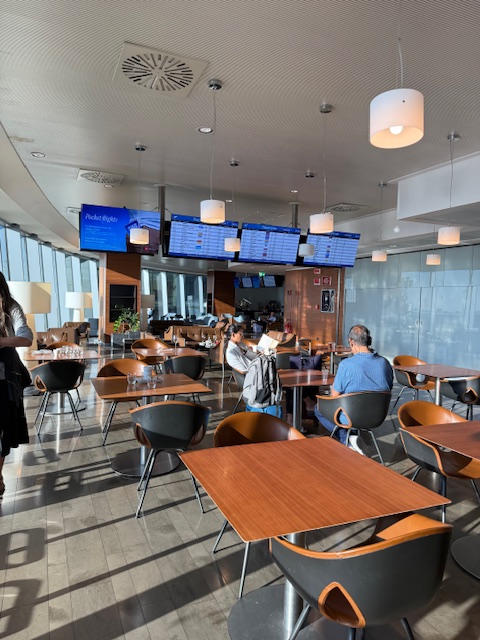 This lounge has magnificent views of the apron. Love it! As with every half-decent airport lounge, the Sala Montale has different types of seating. Tables designed to dine at, working-desk type spaces and more relaxing-oriented options.